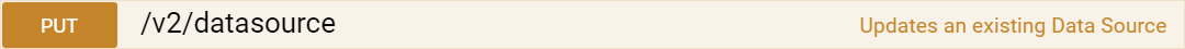 The required parameters for a PUT request to the Data Sources API are outlined below.