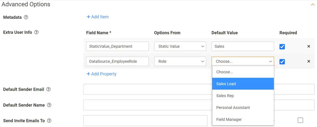 Allows you to add custom metadata properties to a User Record. This helps you standardize the way users are created.