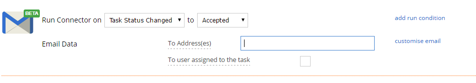 Like our Form Email connector, you can add run conditions and customise the email as desired.