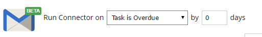 Selecting Task is Overdue from the dropdown then will give you the option of selecting how many days overdue the task is before the connector is triggered.