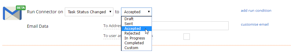 Selecting Task Status Changed from the dropdown will allow you to trigger the connector based on the change of status.